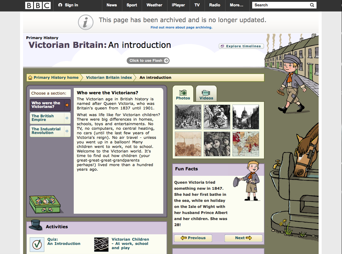 The BBC Primary History website is a very child-friendly and colourful website with cartoons in the background and a wide range of pictures. Facts are simplified and targeted at primary school age group. It also includes educational games to aid learning in a fun way. I would definitely recommend this website to all primary school pupils. I myself used this website frequently in Primary School.